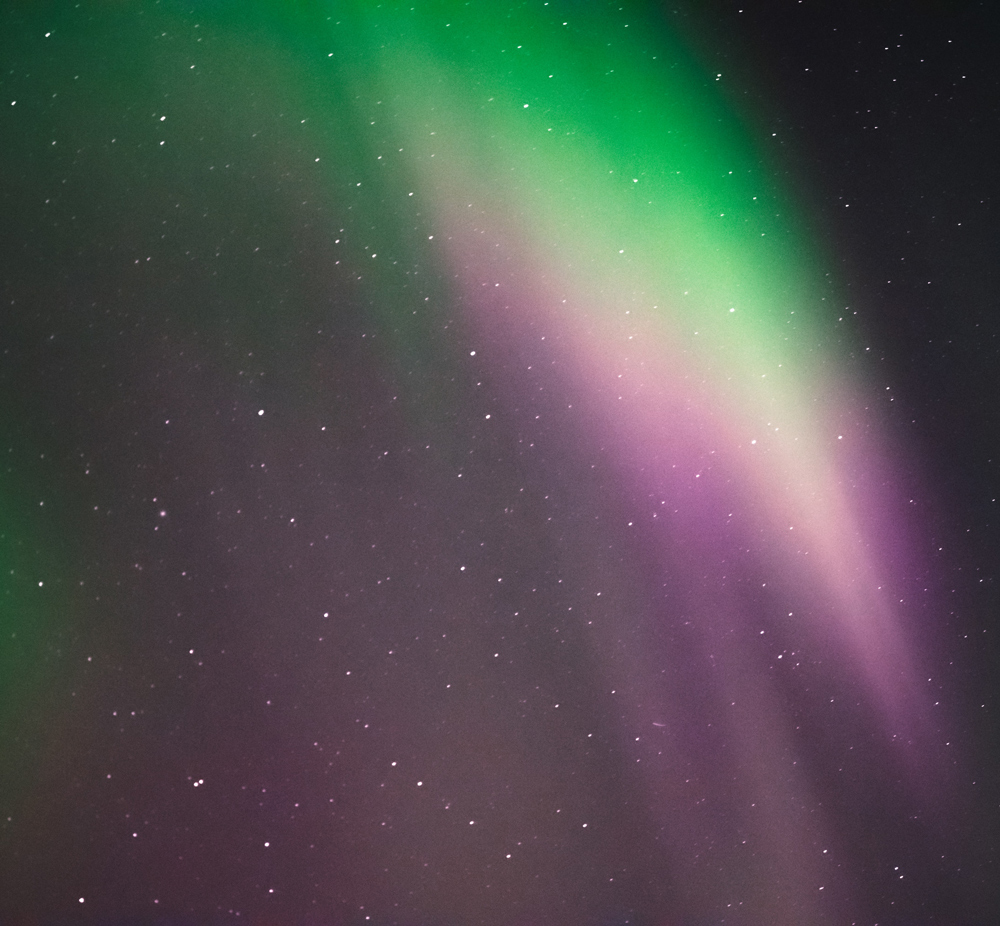 “夜晚观赏极光的时候,要关掉所有灯,只留下红灯照明,最大限度减少光污染。此时的小屋,在黑暗的背景下,露出淡淡的轮廓,屋前的红光洒满一地,在配上远方浅黄色的云彩,有种朦朦胧胧浪漫的美丽。在近乎与世隔绝的阿拉斯加 ,寻到这一份宁静与浪漫,顿觉不枉此行!”